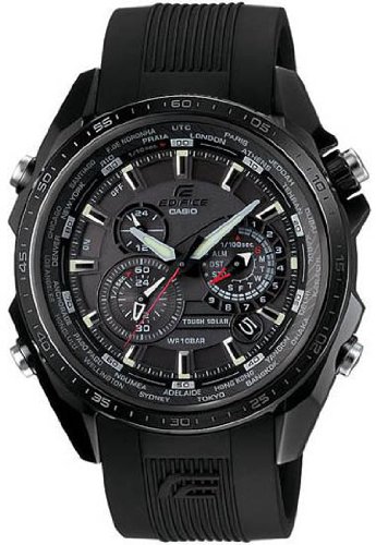 Casio Edifice Black Label Chrono Solar Watch - 3D Black Dial - Rubber Strap