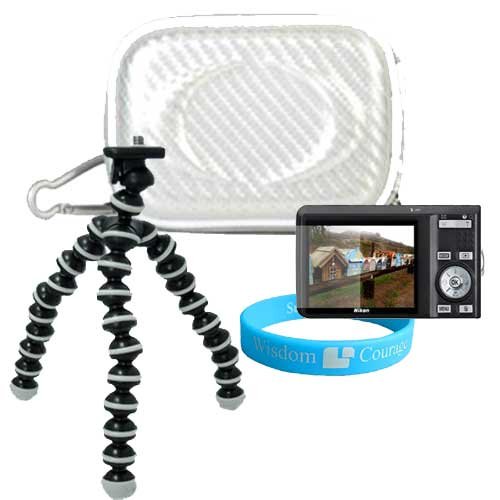 Tripod Features Non-slip feet keeps Camera steady. It is ideal for macro use with digital cameras. The Tripod has foldable legs for compact storage with Adjustable camera mount angle and camera legs. Hard cover camera case is slim fit and provides ultimate protection from water, dirt, dings and scratches.