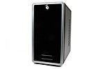 Chenbro ES34069 Mini-ITX Server; high-end home server chassis. Has front access to two USB 2.0 ports, SD/Mini-SD/MMC/MS card reader, power button, and reset button. Supports four hot-swappable 3.5" SATA HDDs.