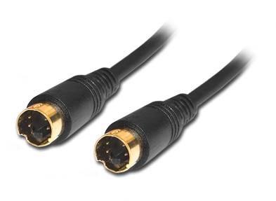 "High quality S-Video cables with molded gold male S-Video connectors on each end. For use with video cameras, DVD, VCRs, DSS, and TVs with Super VHS/S-video capability."