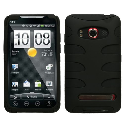 Sprint HTC Evo 4g Hybrid Fishbone plastic/gel Protector Case Cover - Black/Black
