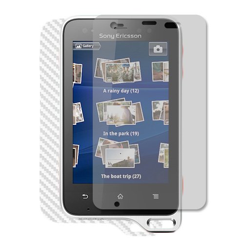 Skinomi TechSkin - Silver Carbon Fiber Film Shield & Screen Protector for Sony Ericsson Xperia Active